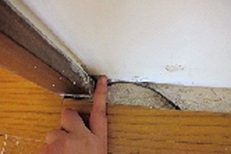 李女士家最大的地板缩缝离墙约4厘米,部分地板间隙明显