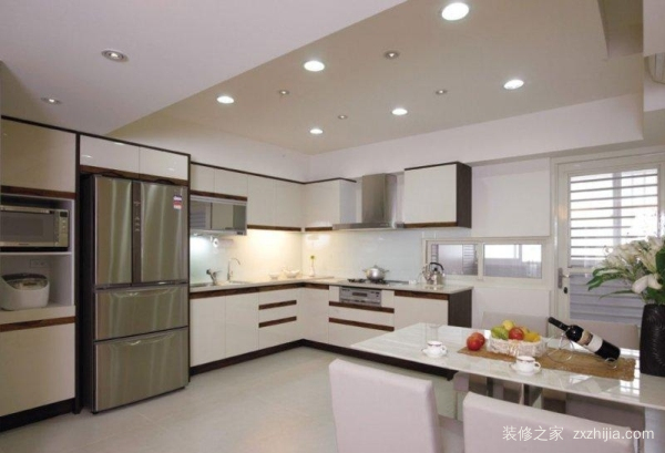 1.可用L类型的橱柜,这种橱柜可以非常节省厨房空间,可以很好地划分洗涤、切割、烹饪和烹饪功能区域,使用水的设计,让人们使用非常方便。