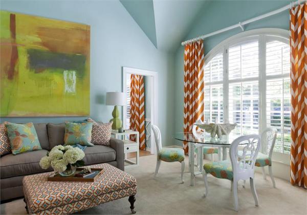 2. 精装修设计注重油漆彩墙,创造视觉三维油漆是改变家居氛围最有效的材料,普通人认为小空间面积狭窄,墙必须刷白色才能有空间扩张效果,事实上,如果选择合适的彩墙颜色,但可以产生深度感,扩大空间的视觉效果。