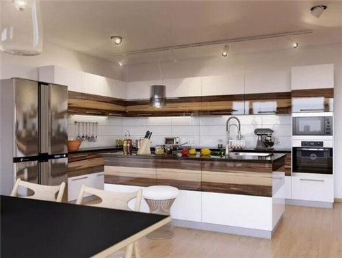 在中国,厨房设计仍然是一种流行的U型设计。这种厨房装饰可以容纳更多的东西,节省空间,增加存储功能。对于小厨房,U厨房的设计不仅节省了空间,还配备了功能隔断,使主人的操作更加顺畅。