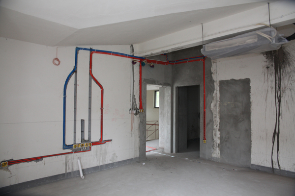 6.水电工程材料进场、地面、墙面、顶面开槽、给水管道铺设、电路布线、给水通电检测、墙面修复。